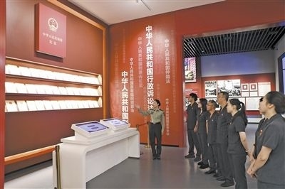 近日,江西省瑞金市人民法院分批次組織黨員干部前往中華蘇維埃共和國法制建設(shè)紀(jì)念館參觀學(xué)習(xí),共同回顧紅色法治發(fā)展軌跡,賡續(xù)紅色法治血脈。紀(jì)念館中復(fù)原的“七里坪革命法庭”“馬錫五下鄉(xiāng)斷案”場(chǎng)景逼真且震撼,黨員干部不時(shí)駐足觀看,互相交流討論。圖為法院黨員干部聆聽講解。