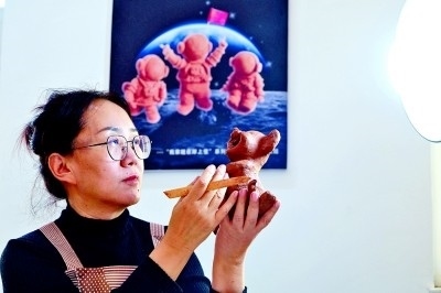 內(nèi)斂安靜的“有愚”、長(zhǎng)發(fā)飄飄的“九曲”、瞪眼齜牙的“八怪”、貌如蓮花的“鰱喜”……色如行云,線(xiàn)走流水,形貌精美,黃河的故事被魯婷巧妙繪制在不起眼的黃河石上,成為一件件惟妙惟肖的藝術(shù)佳作。