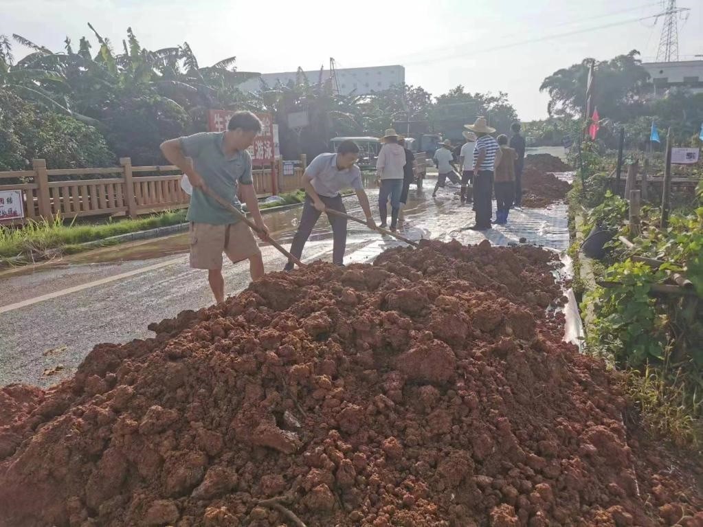 在梧州市長洲區(qū)長洲鎮(zhèn)泗洲村,村民在低水位路段加固堤防。(受訪者供圖)