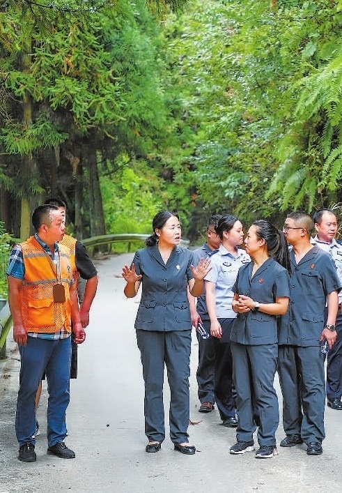 近日,重慶市黔江區(qū)人民法院干警前往黔江區(qū)馬喇國有林場管護站、護林點,對森林防火卡口和護林站點人員值守、消防預警機制等開展走訪調查,深入林區(qū)為農戶宣講森林防火、森林生態(tài)環(huán)境保護等法律知識,營造全民共護森林的良好氛圍,筑牢武陵山區(qū)生態(tài)屏障。圖為干警在林區(qū)走訪調查。(本報記者 劉洋 本報通訊員 楊非 攝)