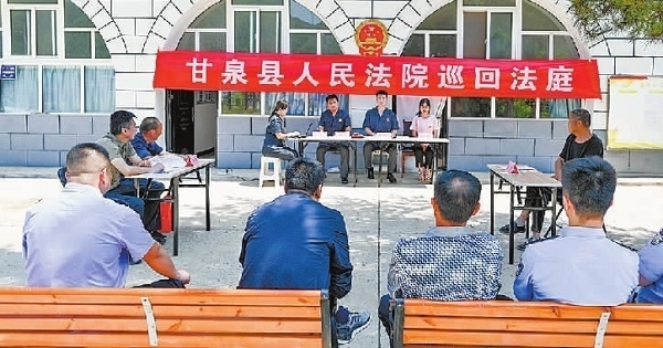 近日,陜西省甘泉縣人民法院道鎮(zhèn)人民法庭在審理一起侵害集體經濟組織成員權益糾紛案件時,考慮到本案為該區(qū)域多發(fā)常見類糾紛,遂將巡回審判庭搬進道鎮(zhèn)五里橋村,在窯洞前就地審理。庭審中,法官充分聽取雙方當事人意見,就爭議焦點進行釋法明理。經過一個多小時的調解,雖因雙方訴求差距過大未最終達成調解協議,但極大緩和了雙方矛盾。下一步,法官將繼續(xù)就雙方當事人的訴求研判方案,組織調解。庭審結束后,法官向群眾介紹了本案相關的法律規(guī)定,就大家關心的法律問題進行答疑解惑。圖為巡回審判現場。(本報記者 劉輝 本報通訊員 李樂 攝)