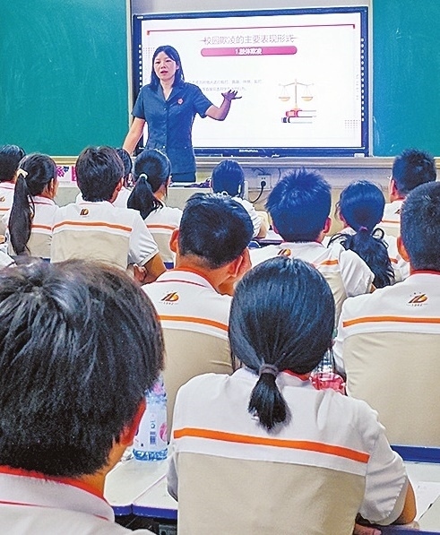 近日,湖北省??悼h人民法院蒲公英法治宣講隊成員張曉麗走進??悼h第一中學,結合高一新生年齡特點,詳細講解了預防未成年人犯罪法等法律知識,深入剖析校園暴力、猥褻性侵、網絡詐騙等危害,強調學法、守法、知法、懂法的重要性,引導學生們樹立正確的法治觀念。圖為張曉麗向同學們講解法律知識。(本報記者 丁俐 本報通訊員 王韻婕 攝)
