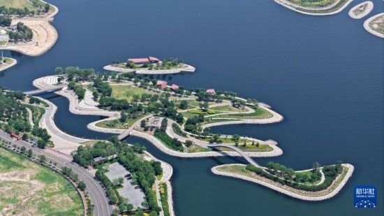 這是6月28日拍攝的天津市濱海新區(qū)南灣公園一景(無人機照片)。