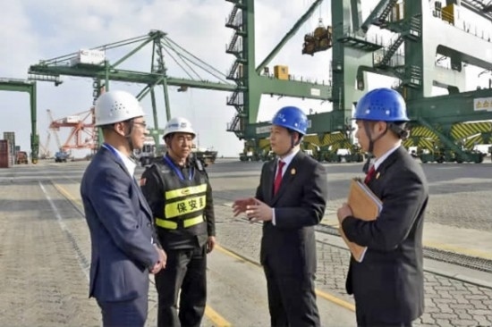 福清市人民法院干警走訪福州新港國(guó)際集裝箱碼頭有限公司,了解企業(yè)法律需求。林怡佳 攝
