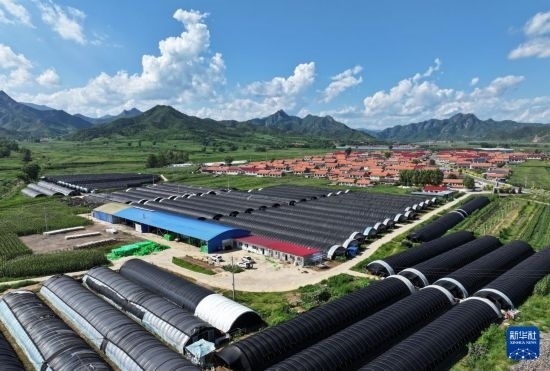 這是7月26日在隆化縣章吉營鎮(zhèn)拍攝的食用菌大棚(無人機(jī)照片)。