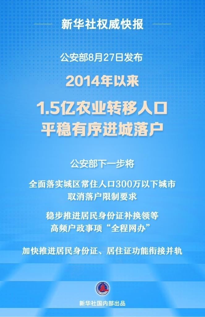 2014年以來共有1.5億農(nóng)業(yè)轉(zhuǎn)移人口平穩(wěn)有序進(jìn)城落戶