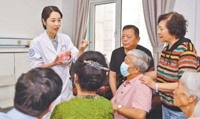 山東省濟(jì)南市第二人民醫(yī)院醫(yī)生為患者和家屬講解人工晶體國(guó)家集采政策。