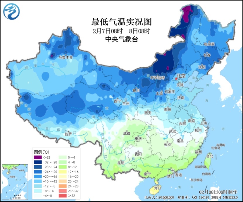 人民網(wǎng)北京2月8日電 (溫璐、高清揚(yáng))據(jù)中央氣象臺消息,昨日,受寒潮影響,內(nèi)蒙古中東部、華北、黃淮、江淮、江南北部及青藏高原等地部分地區(qū)出現(xiàn)大風(fēng)天氣,陣風(fēng)風(fēng)力有6~9級,內(nèi)蒙古、北京、河北、山西、山東、浙江及青海、西藏等局地風(fēng)力達(dá)10~12級。同時(shí),北方大部地區(qū)經(jīng)歷入冬以來最冷一天,內(nèi)蒙古呼和浩特最低氣溫-26.5℃。今晨,河南南部、安徽、江蘇中南部、上海、浙江中北部、江西北部、湖北北部及內(nèi)蒙古東北部、黑龍江西北部等地出現(xiàn)6~10℃降溫,局地降溫幅度超過12℃。