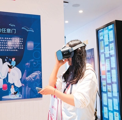 近日,云南省第四屆全民閱讀大會(huì)在昭通市昭通古城舉行。活動(dòng)包括惠民書展、非遺體驗(yàn)、文創(chuàng)展銷等活動(dòng),營造愛讀書、讀好書、善讀書的書香氛圍。圖為市民在云南省昭通市一家書店體驗(yàn)VR閱讀。