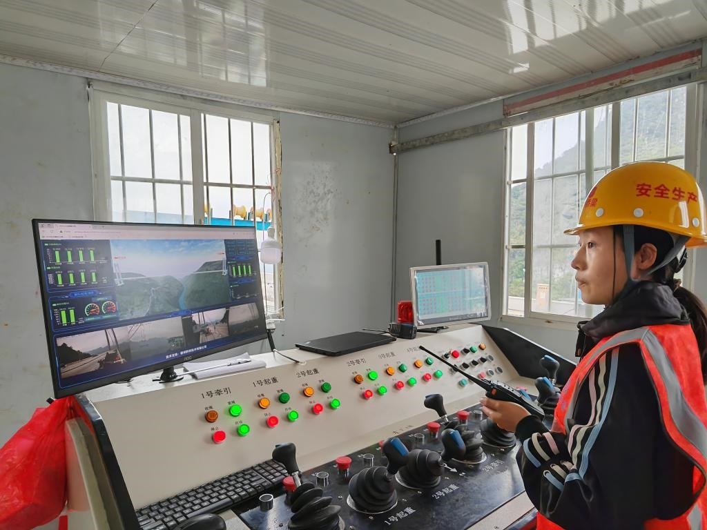 年輕的技術(shù)員操控大橋吊裝。新華社記者向定杰 攝