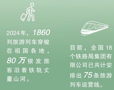 今年2月,商務(wù)部、文化和旅游部、中國(guó)國(guó)家鐵路集團(tuán)有限公司等9單位聯(lián)合發(fā)布《關(guān)于增開(kāi)銀發(fā)旅游列車促進(jìn)服務(wù)消費(fèi)發(fā)展的行動(dòng)計(jì)劃》,指出要擴(kuò)容旅游列車線路和產(chǎn)品,豐富銀發(fā)旅游列車產(chǎn)品供給,建立品質(zhì)型、舒適型、普惠型產(chǎn)品體系。目前,全國(guó)18個(gè)鐵路局集團(tuán)有限公司已共計(jì)安排出75條旅游列車運(yùn)營(yíng)線。一趟趟銀發(fā)列車如春日繁花次第綻放,為老年人鋪就通往詩(shī)與遠(yuǎn)方的旅途,更以流動(dòng)的風(fēng)景線激活沿線文旅消費(fèi),為推動(dòng)經(jīng)濟(jì)高質(zhì)量發(fā)展注入“銀發(fā)”新動(dòng)能。