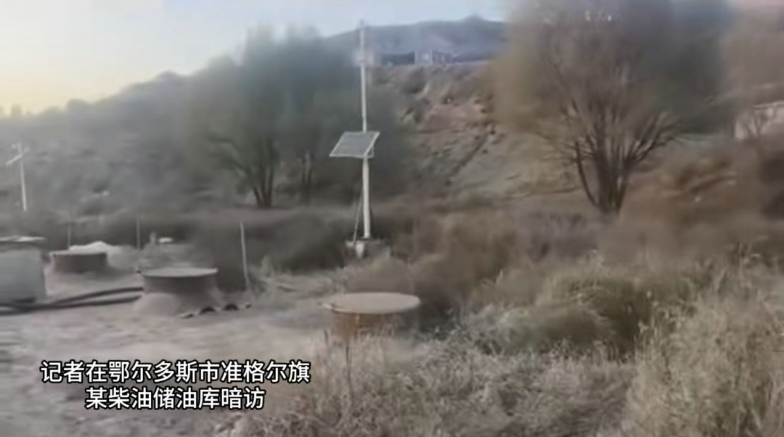 10月28日,內(nèi)蒙古日報(bào)社張弓長新聞工作室記者在鄂爾多斯市準(zhǔn)格爾旗一個(gè)緊鄰礦區(qū)的山溝里暗訪時(shí)發(fā)現(xiàn),有一處規(guī)模較大的地埋罐式柴油儲油庫,存在重大安全隱患。