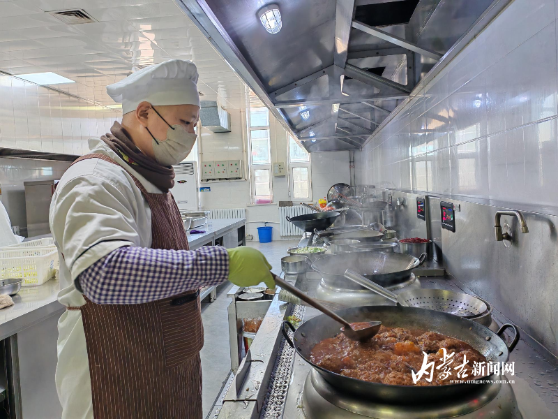 春節(jié)期間的桑根達來行車公寓后廚,廚師孫磊正在灶臺前忙碌著。面前一口碩大的鐵鍋內(nèi),醬色的四喜丸子在濃郁的湯汁里,散發(fā)著撲鼻的香氣。廚房升騰著陣陣煙火氣,蒸汽在玻璃窗上凝成水珠。灶臺上好幾口鐵鍋同時翻騰著——紅燒肉咕嘟冒泡,油燜大蝦亮紅誘人,燉牛肉飄來陣陣香氣,圓嘟嘟的餃子也即將下鍋。千家萬戶團圓之時,這個草原深處的特殊驛站里,工作人員正用精心制作的特色美食,為堅守崗位的鐵路人打造出別具溫情的團圓飯。