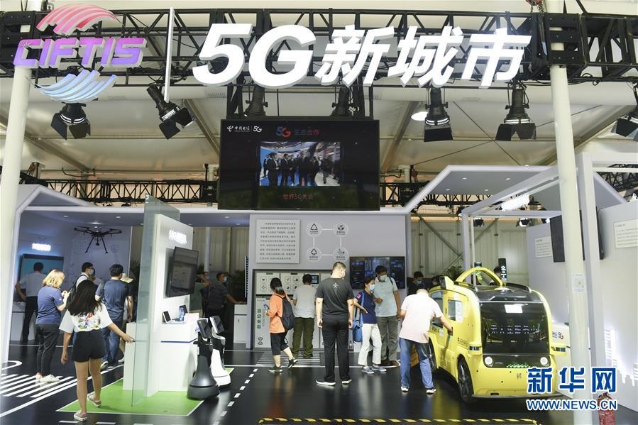觀眾在2020年中國國際服務貿(mào)易交易會5G通信服務專題展區(qū)參觀(2020年9月7日攝)。新華社記者魯鵬攝