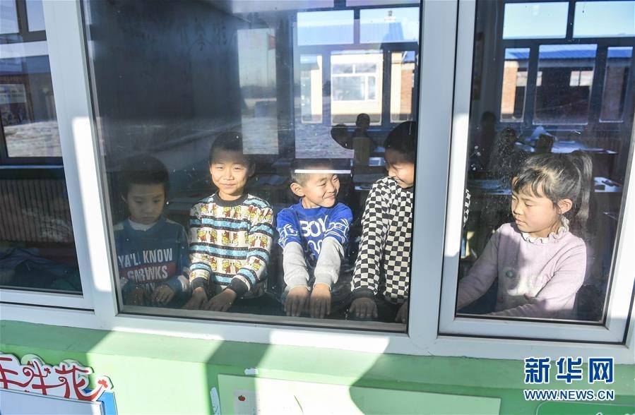 吉林省德惠市邊崗鄉(xiāng)臥虎村小學學生在戶外活動后圍著教室內(nèi)的環(huán)流散熱器取暖(2018年12月26日攝)。新華社記者許暢攝