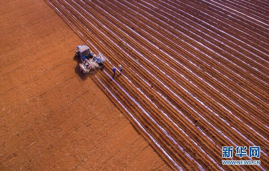 這是1月28日在廣東湛江拍攝的耕作畫面(無人機照片)。新華社發(fā)