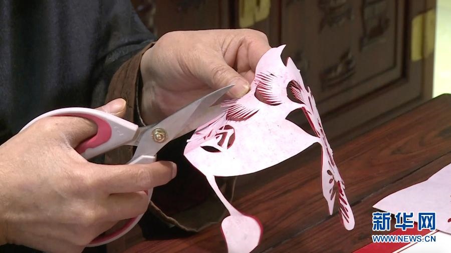 2月9日,“北京剪紙”非物質(zhì)文化遺產(chǎn)傳承人徐陽在書桌前剪紙,喜迎新春(視頻截圖)。新華社發(fā)