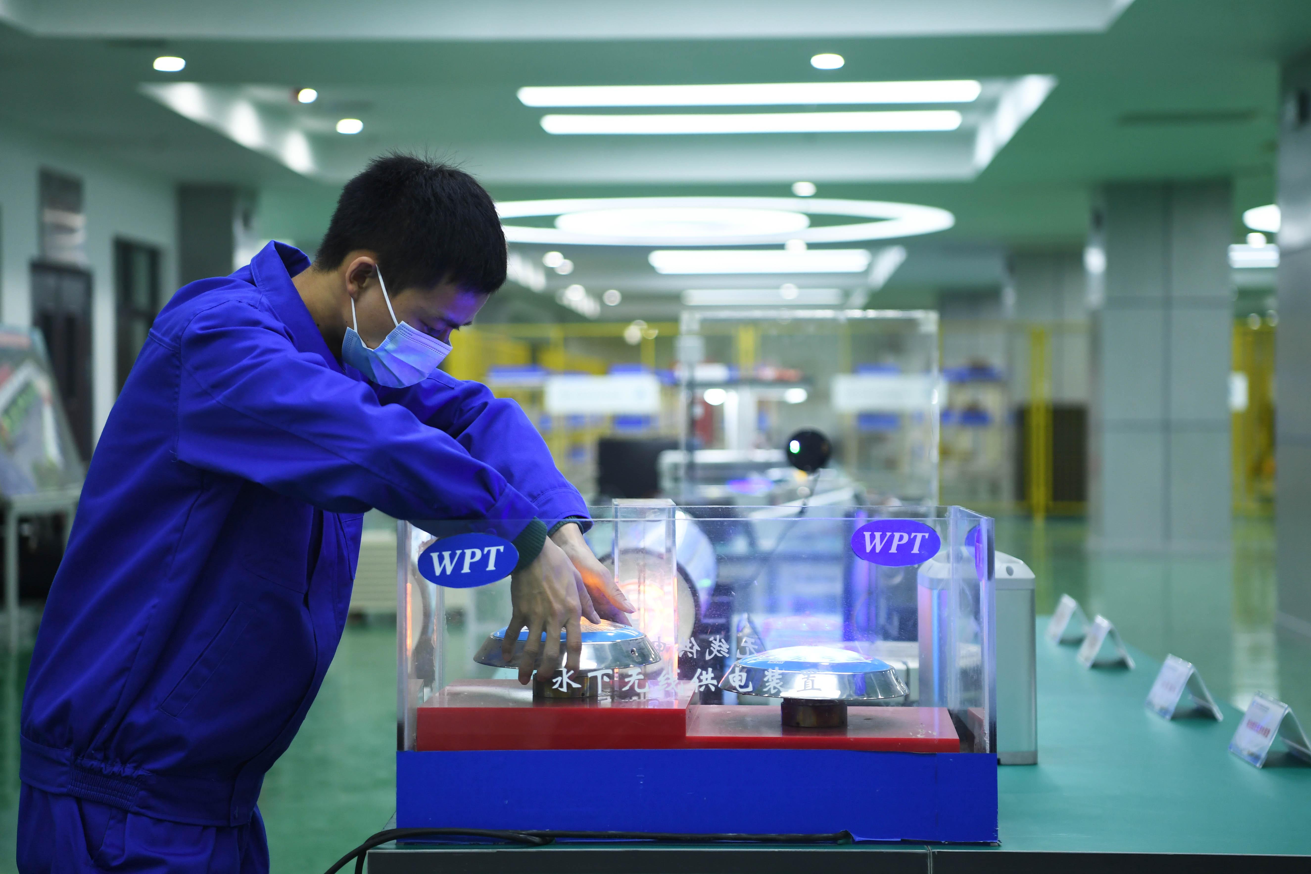 △重慶一科技企業(yè)的工作人員正在測(cè)試水下無線供電裝置。