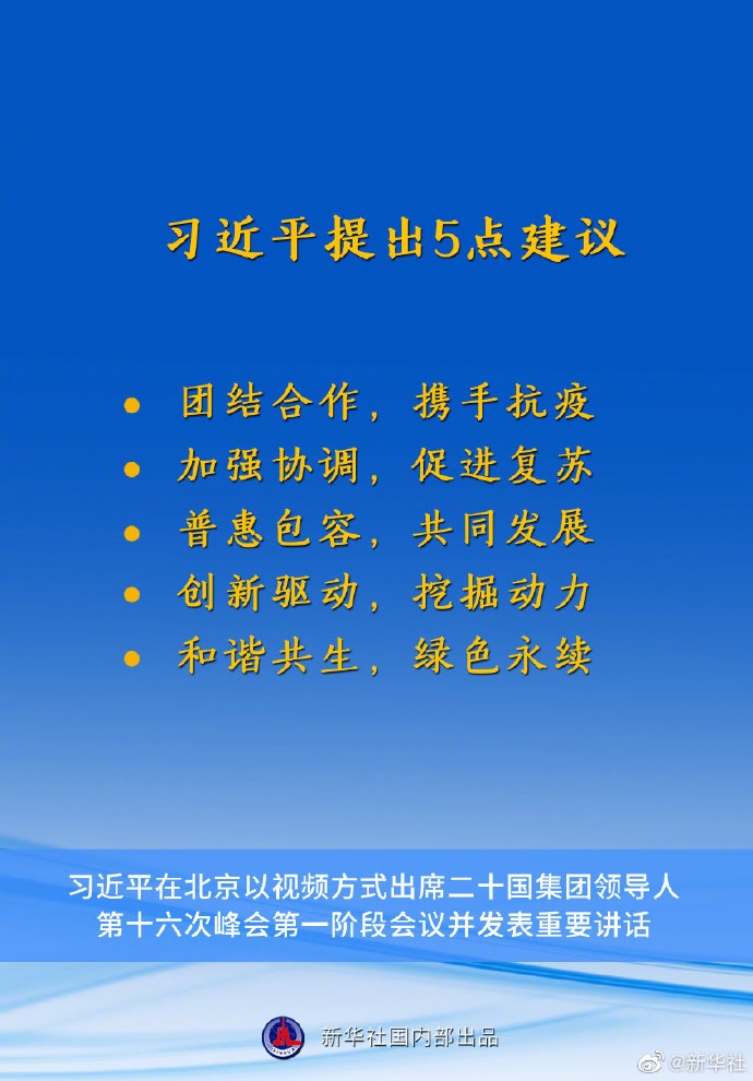 國(guó)家主席習(xí)近平10月30日在北京以視頻方式出席二十國(guó)集團(tuán)領(lǐng)導(dǎo)人第十六次峰會(huì)第一階段會(huì)議并發(fā)表重要講話。講話有哪些要點(diǎn),一起來看↓