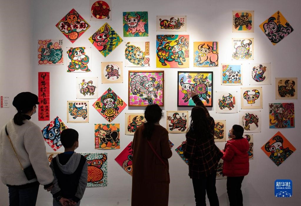 2月12日,在成都市人民公園,觀眾在觀看成都年畫展。新華社記者 江宏景/攝