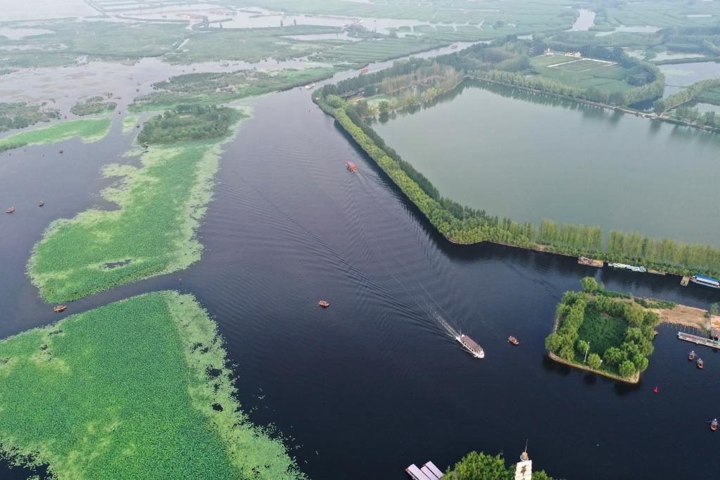 這是河北雄安新區(qū)白洋淀淀區(qū)景色(2021年7月15日,無(wú)人機(jī)拍攝)。新華社記者朱旭東攝