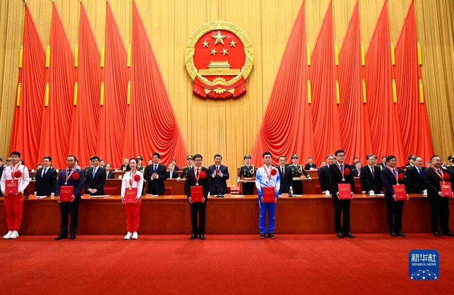 韓正宣讀《中共中央、國(guó)務(wù)院關(guān)于表彰北京冬奧會(huì)、冬殘奧會(huì)突出貢獻(xiàn)集體和突出貢獻(xiàn)個(gè)人的決定》。決定指出,為隆重表彰先進(jìn)典型,激勵(lì)全黨全國(guó)各族人民為全面建設(shè)社會(huì)主義現(xiàn)代化國(guó)家而努力奮斗,黨中央、國(guó)務(wù)院決定,授予國(guó)家速滑館場(chǎng)館運(yùn)行團(tuán)隊(duì)等148個(gè)集體“北京冬奧會(huì)、冬殘奧會(huì)突出貢獻(xiàn)集體”稱號(hào);授予蘇翊鳴等147名同志、追授鄧小嵐同志“北京冬奧會(huì)、冬殘奧會(huì)突出貢獻(xiàn)個(gè)人”稱號(hào)。