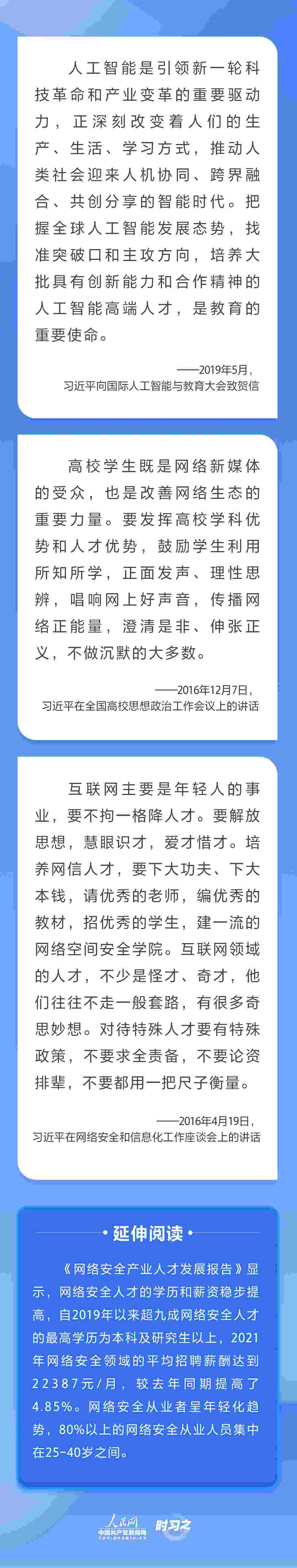 “網(wǎng)信領(lǐng)域是技術(shù)密集型、創(chuàng)新密集型領(lǐng)域,千軍易得、一將難求,必須聚天下英才而用之?!秉h的十八大以來,習近平總書記多次就網(wǎng)信事業(yè)發(fā)展作出重要論述,并將抓好人才工作擺在治國理政的重要位置,為新時代網(wǎng)信人才工作和網(wǎng)信人才事業(yè)發(fā)展指明了前進方向。