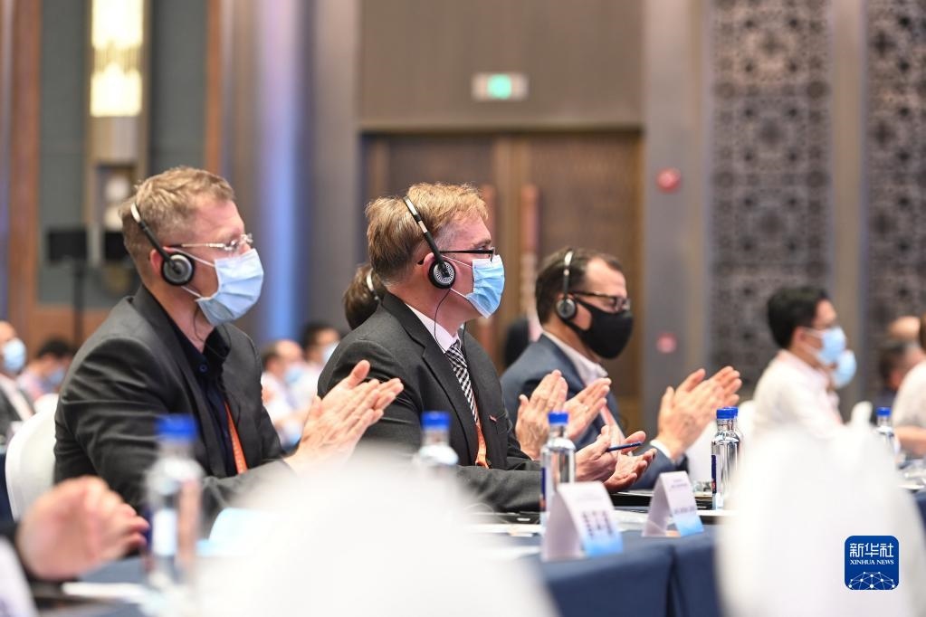2022年5月23日,嘉賓在福建廈門(mén)出席金磚國(guó)家工業(yè)互聯(lián)網(wǎng)與數(shù)字制造發(fā)展論壇開(kāi)幕式。新華社記者林善傳攝