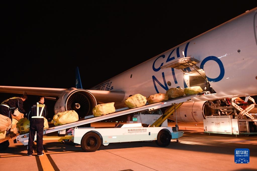 2019年10月30日凌晨,浙江杭州飛往俄羅斯首都莫斯科的首條直達(dá)電商貨運(yùn)航線“菜鳥(niǎo)號(hào)”從蕭山國(guó)際機(jī)場(chǎng)首航。新華社記者黃宗治攝
