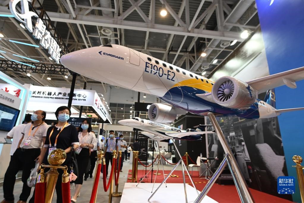2021年9月8日,參觀者在廈門(mén)開(kāi)幕的金磚國(guó)家新工業(yè)革命展上拍攝飛機(jī)模型。新華社記者林善傳攝