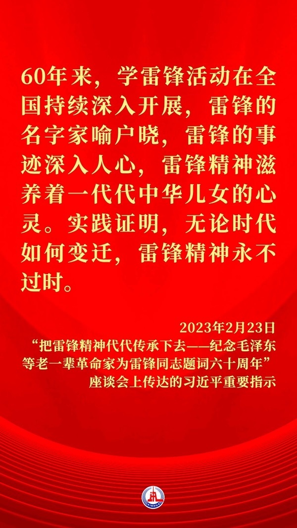 “60年來,學雷鋒活動在全國持續(xù)深入開展,雷鋒的名字家喻戶曉,雷鋒的事跡深入人心,雷鋒精神滋養(yǎng)著一代代中華兒女的心靈?!绷暯娇倳浗諏ι钊腴_展學雷鋒活動作出重要指示。