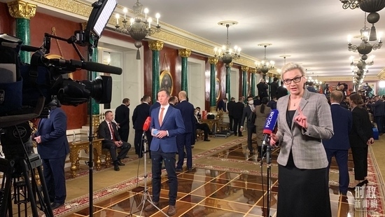 習(xí)主席當(dāng)天在克里姆林宮的活動從下午持續(xù)到晚上。兩國元首先后舉行小范圍、大范圍會談。會談后,兩國元首共同簽署了兩份重磅聯(lián)合聲明,并共同會見記者。當(dāng)晚,普京總統(tǒng)還為習(xí)主席舉行了隆重的歡迎宴會。