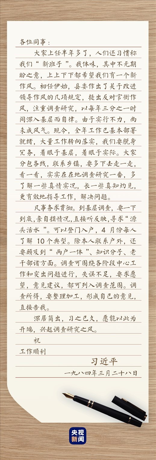 3月底的一天,河北正定縣委、縣人大常委會(huì)、縣政府、縣政協(xié)四大班子領(lǐng)導(dǎo)成員,同時(shí)收到一封內(nèi)容相同的信。信中,“注重調(diào)查研究”“著眼于基層,著眼于實(shí)際”“實(shí)實(shí)在在地調(diào)查研究一番”,言之切切。接到這封信,正定四大班子領(lǐng)導(dǎo)都坐不住了?!傲?xí)書記這回較真了啊!”