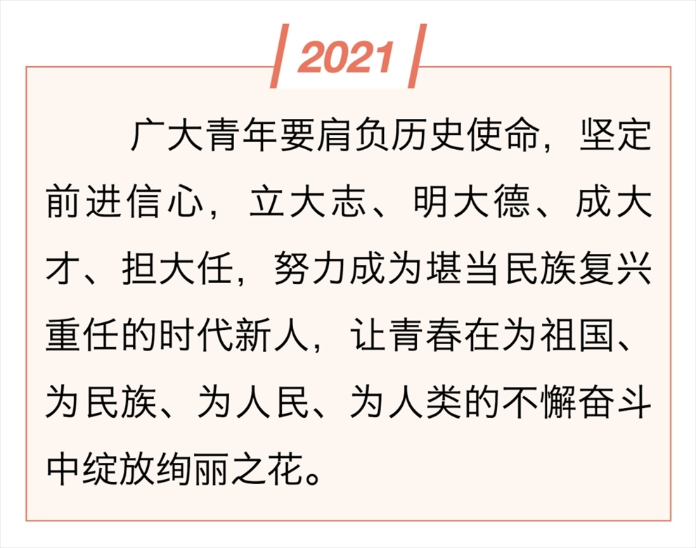新時代新征程,中國青年將牢記總書記囑托,激揚(yáng)奮斗青春,擔(dān)當(dāng)時代重任,讓青春年華在奮斗與奉獻(xiàn)中煥發(fā)出絢麗光彩。