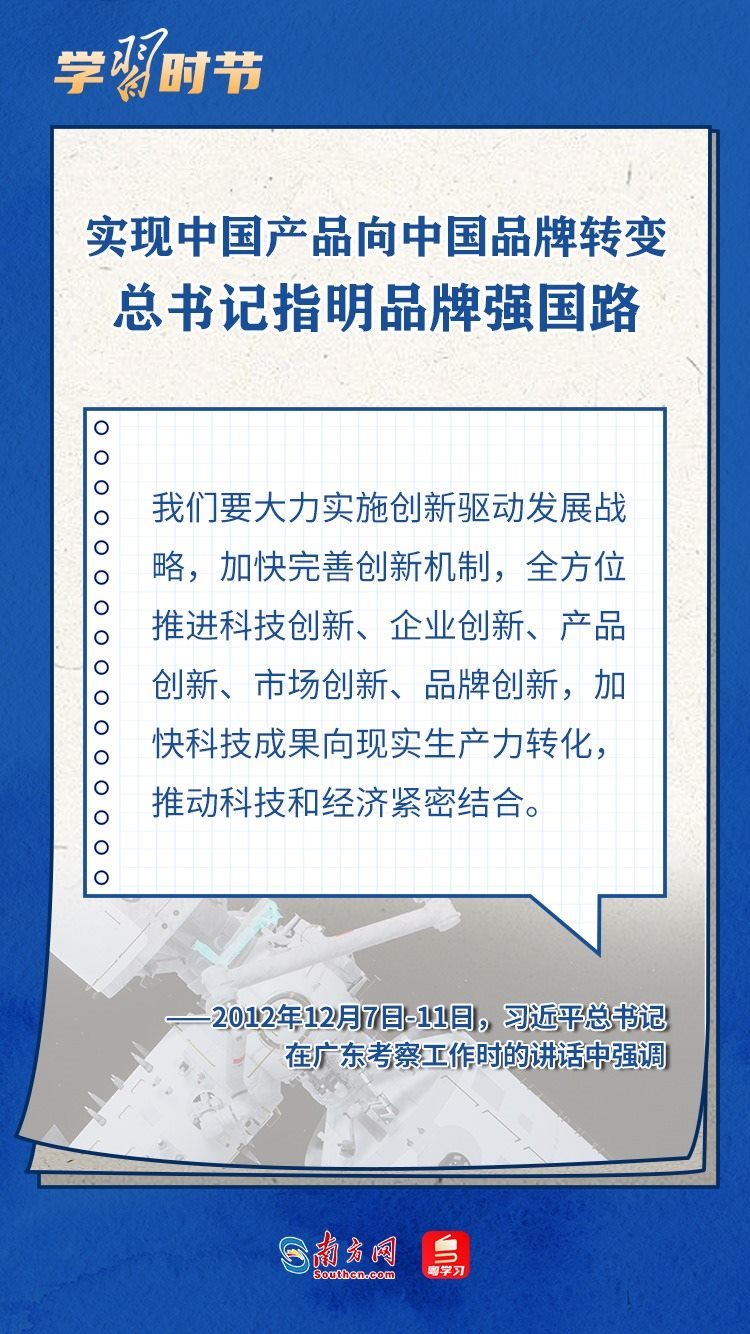 2014年5月10日,習(xí)近平總書記在河南考察時(shí)提出,“推動(dòng)中國制造向中國創(chuàng)造轉(zhuǎn)變、中國速度向中國質(zhì)量轉(zhuǎn)變、中國產(chǎn)品向中國品牌轉(zhuǎn)變”?!叭齻€(gè)轉(zhuǎn)變”為推動(dòng)我國產(chǎn)業(yè)結(jié)構(gòu)轉(zhuǎn)型升級(jí)、打造中國品牌指明了方向。