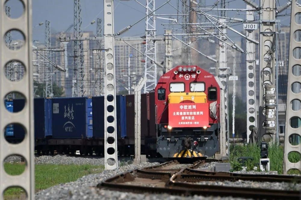 △載有土庫(kù)曼斯坦甘草中藥材原料的中歐班列回程列車抵達(dá)西安國(guó)際港站(2022年8月31日攝)。