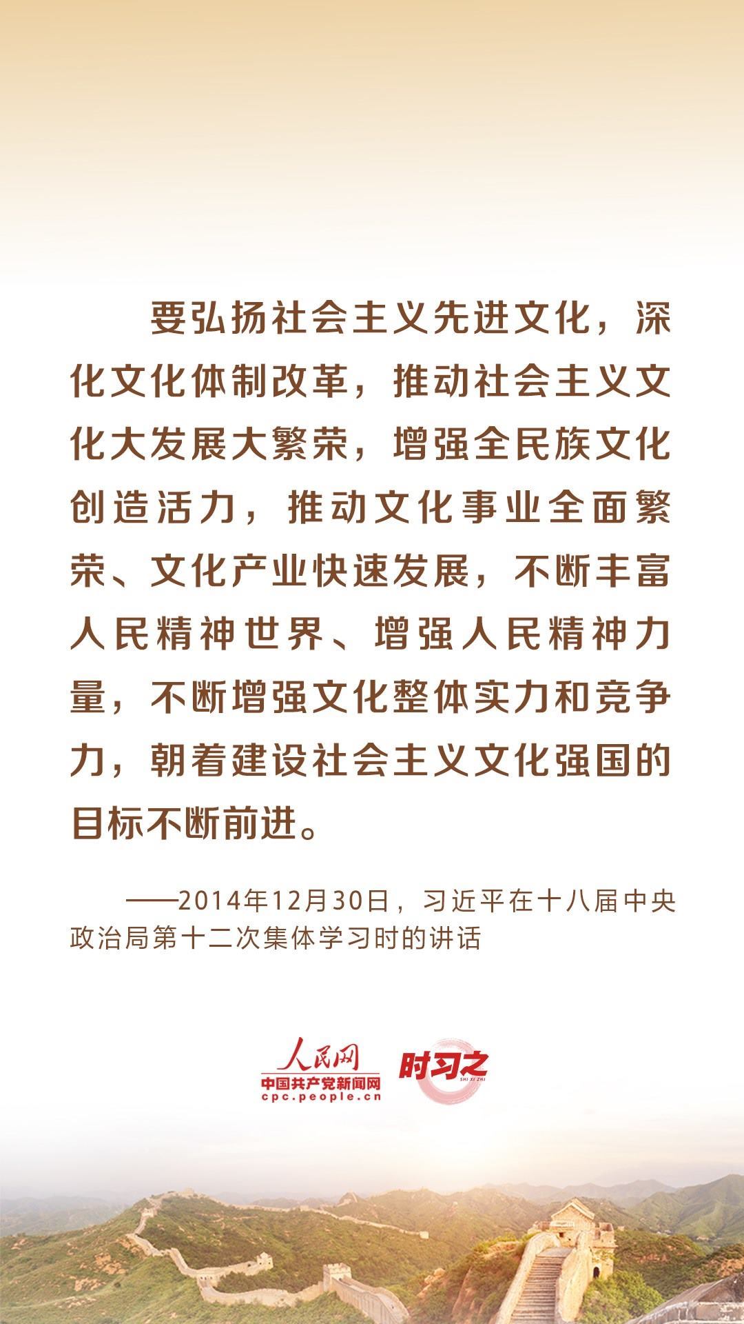 “理論自覺、文化自信,是一個民族進步的力量;價值先進、思想解放,是一個社會活力的來源。”黨的十八大以來,習近平總書記就文化建設提出了一系列新理念新思想新戰(zhàn)略,引領中華文化創(chuàng)造性轉(zhuǎn)化、創(chuàng)新性發(fā)展。推動弘揚和發(fā)展社會主義先進文化,習近平多次作出重要闡釋。
