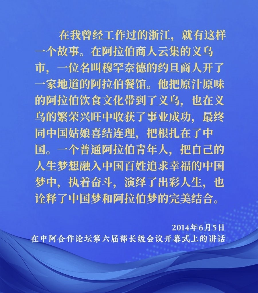 2014年6月5日,中阿合作論壇第六屆部長級會議在北京人民大會堂開幕。習(xí)近平出席開幕式并發(fā)表題為《弘揚絲路精神,深化中阿合作》的講話。