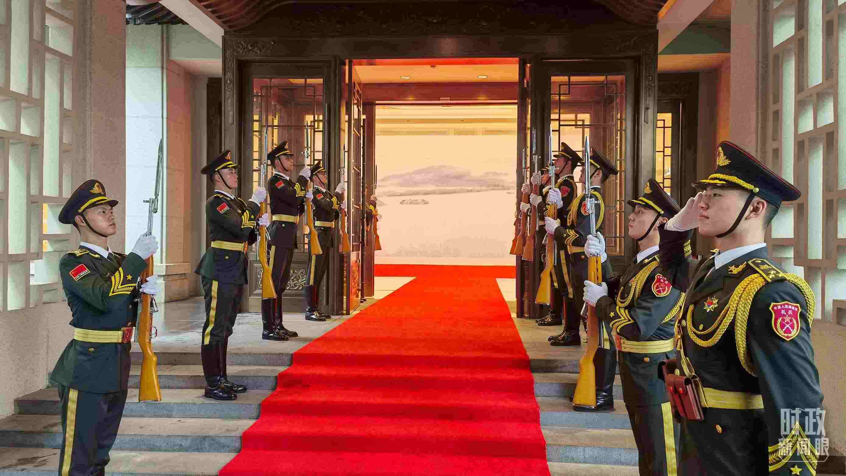 △雙邊會(huì)場外的禮兵。(總臺(tái)央視記者周志國拍攝)