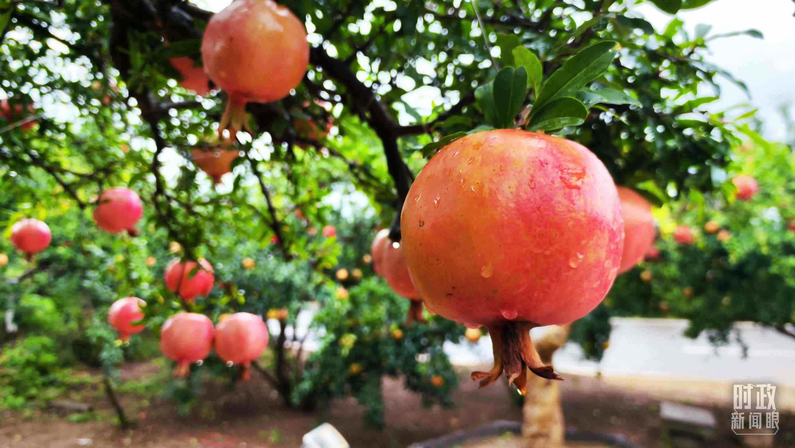 △一場(chǎng)秋雨過(guò)后,石榴更顯晶瑩。(總臺(tái)央視記者李輝、范一鳴拍攝)