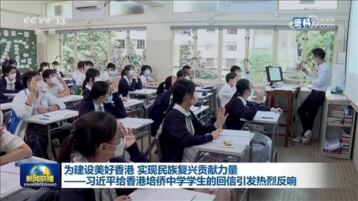 央視網(wǎng)消息(新聞聯(lián)播):習(xí)近平主席24日給香港培僑中學(xué)高一年級(jí)全體學(xué)生回信,對(duì)他們予以親切勉勵(lì)。香港培僑中學(xué)師生表示,收到習(xí)主席的回信深受鼓舞,他們將不負(fù)習(xí)主席的期望,堅(jiān)持讀萬卷書,行萬里路,融入國(guó)家發(fā)展,為建設(shè)美好香港,實(shí)現(xiàn)民族復(fù)興貢獻(xiàn)力量。