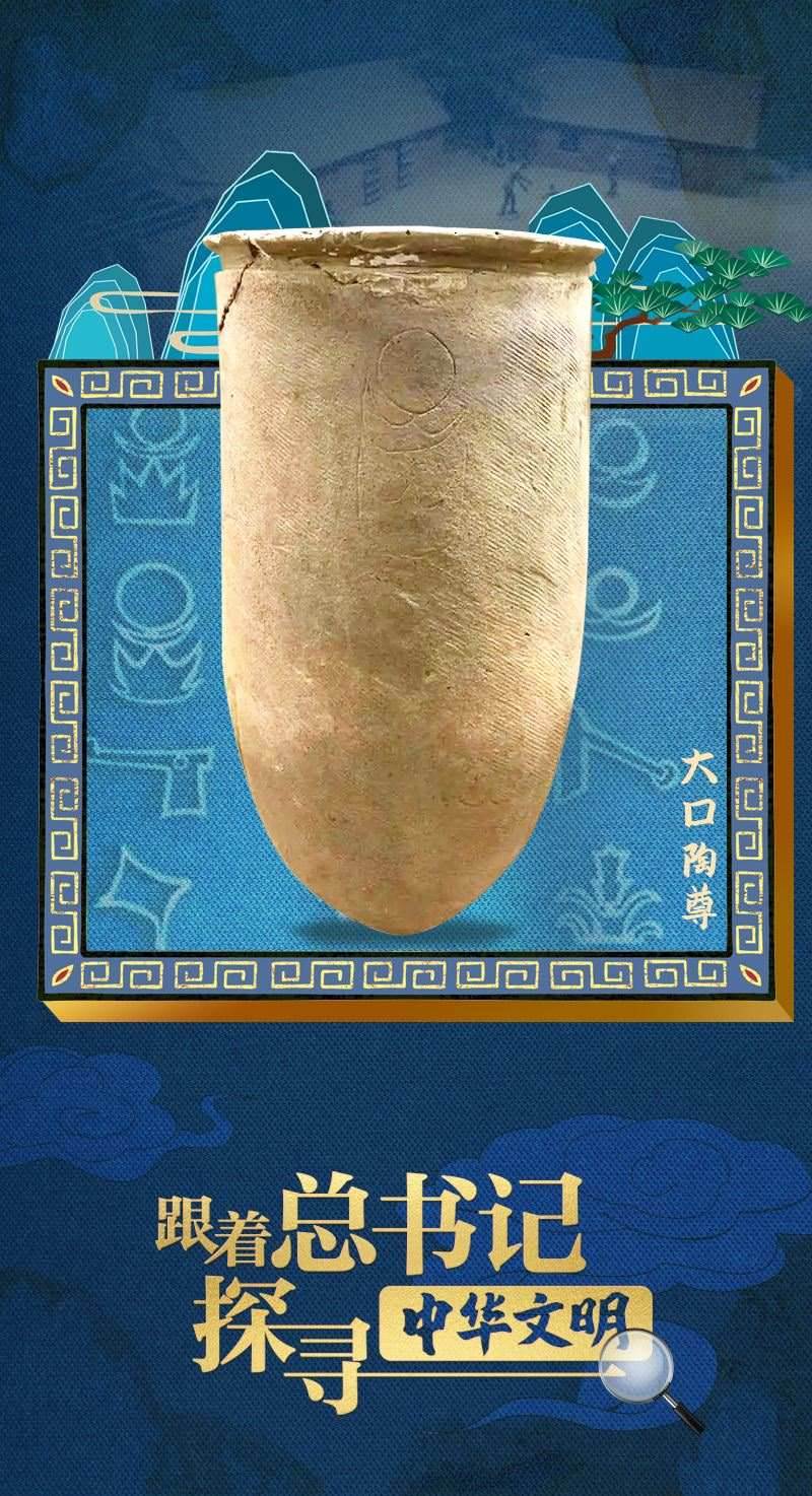 2023年6月2日,習(xí)近平總書記來到中國歷史研究院考察調(diào)研。展廳內(nèi),總書記沿“歷史大道”前行,仔細(xì)詢問最新考古發(fā)掘成果和文物展品保護(hù)情況。講解員指著一件陶器展品向總書記介紹:“這是一件出土于安徽蒙城新石器時代尉遲寺遺址的大口陶尊,距今大約4800年?!笨倳浽儐枺骸爸袊鞘澜缟咸掌髌鹪醋钤绲膰覇幔俊?/p>