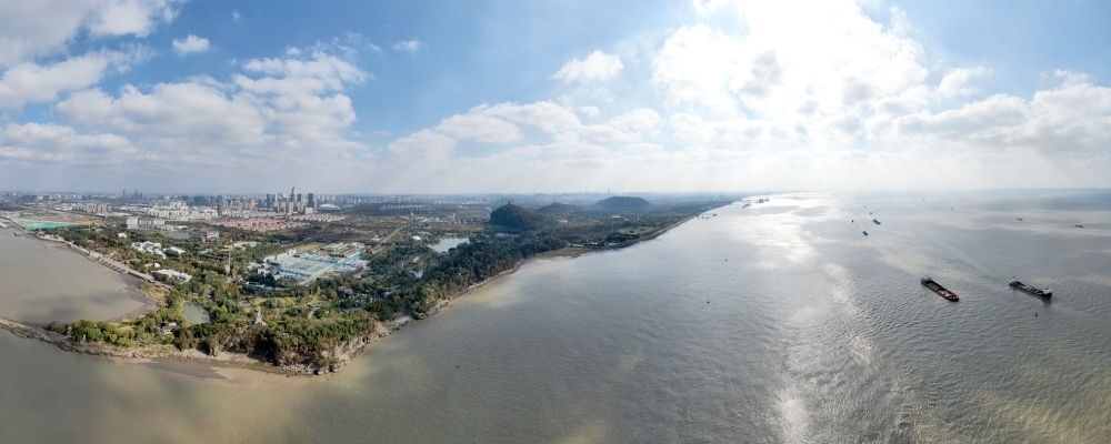 這是2020年11月13日拍攝的江蘇省南通市五山及沿江地區(qū)景色(無人機(jī)全景照片)。新華社記者 季春鵬 攝