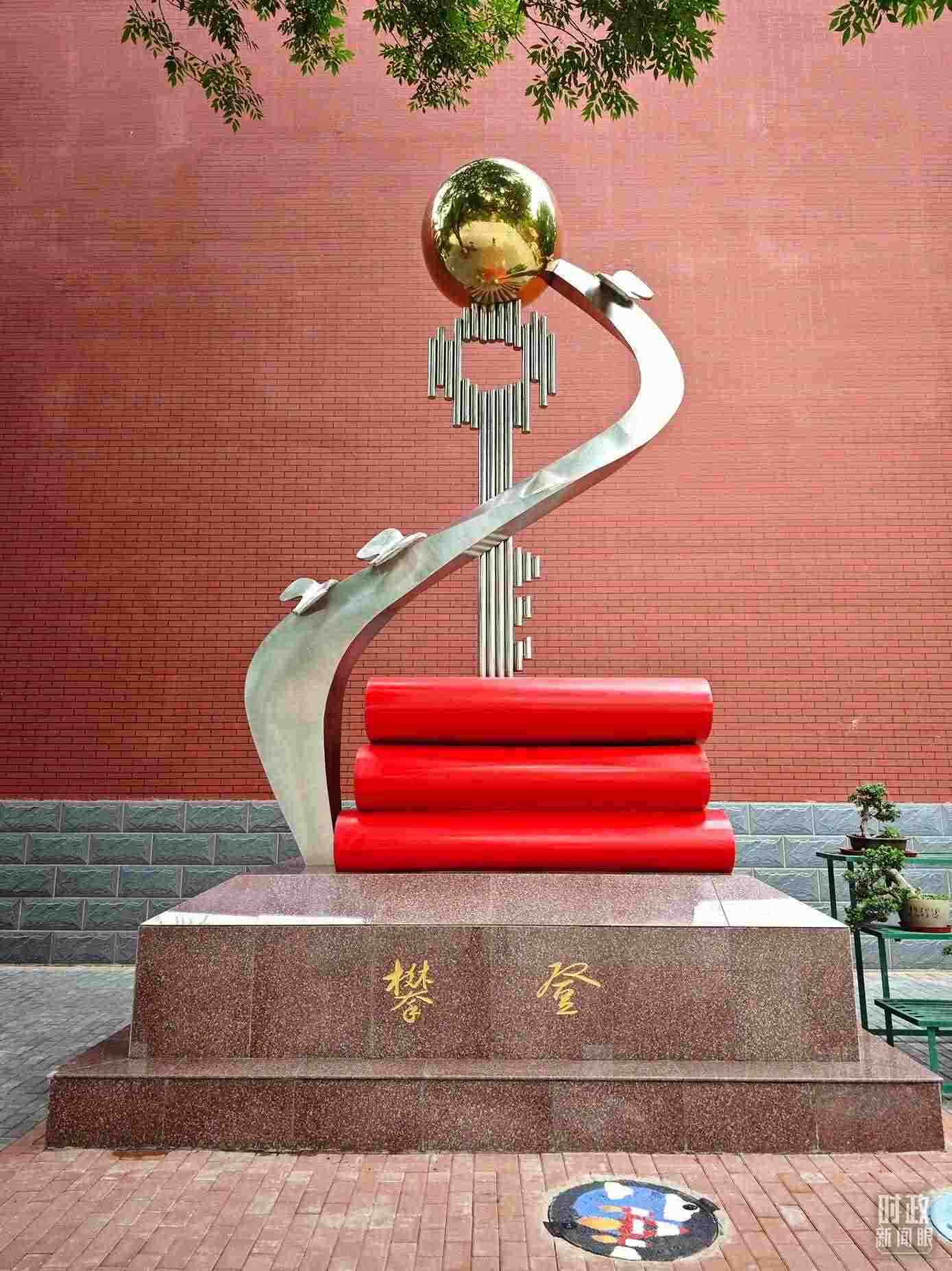 △北京育英學校內(nèi)的“攀登”雕塑。(總臺央視記者彭漢明拍攝)