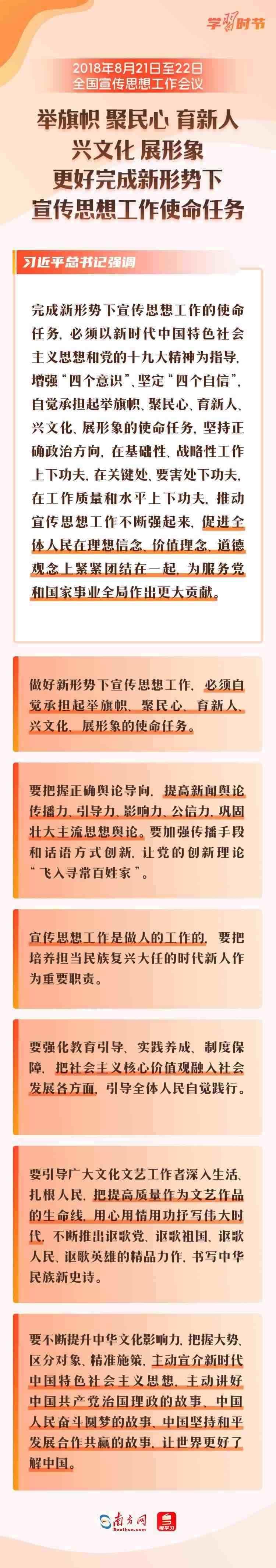 宣傳思想文化工作事關(guān)黨的前途命運(yùn),事關(guān)國家長治久安,事關(guān)民族凝聚力和向心力,是一項極端重要的工作。黨的十八大以來,宣傳思想文化工作之所以取得歷史性成就,最根本就在于有習(xí)近平總書記領(lǐng)航掌舵,有習(xí)近平新時代中國特色社會主義思想科學(xué)指引。讓我們一同回顧剛剛召開的全國宣傳思想文化工作會議,以及2018年、2013年召開的兩次全國宣傳思想工作會議,看看總書記通過這三次會議,為宣傳思想文化工作劃出了哪些重點。