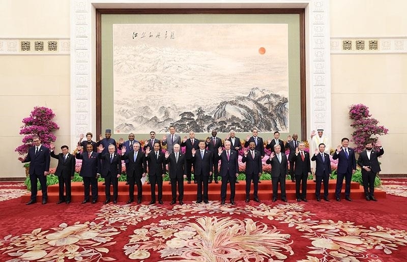 △2023年10月18日,第三屆“一帶一路”國際合作高峰論壇開幕式前,習近平主席同出席高峰論壇的國際貴賓集體合影。
