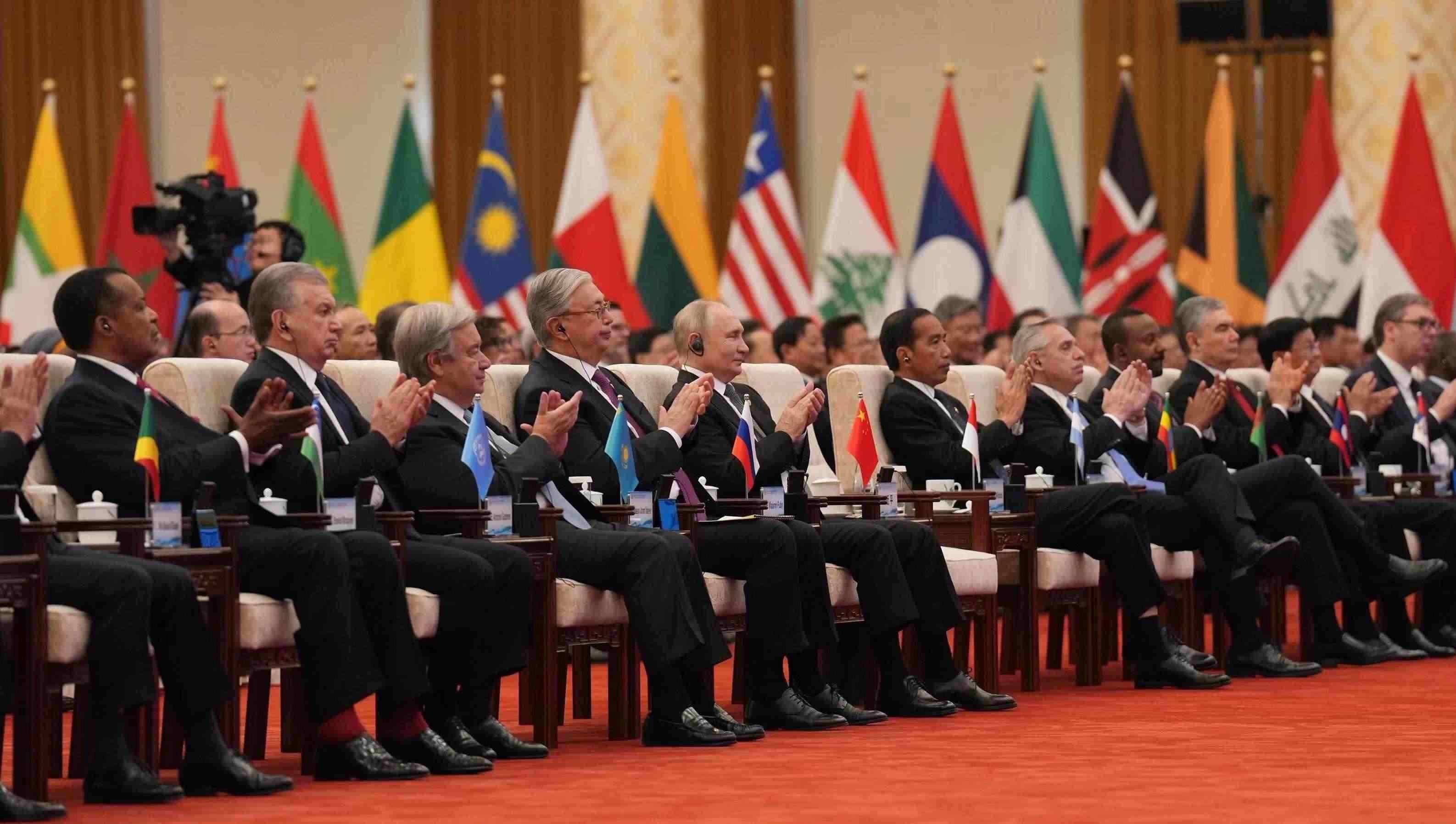 △2023年10月18日,出席第三屆“一帶一路”國際合作高峰論壇開幕式的外方領(lǐng)導人。