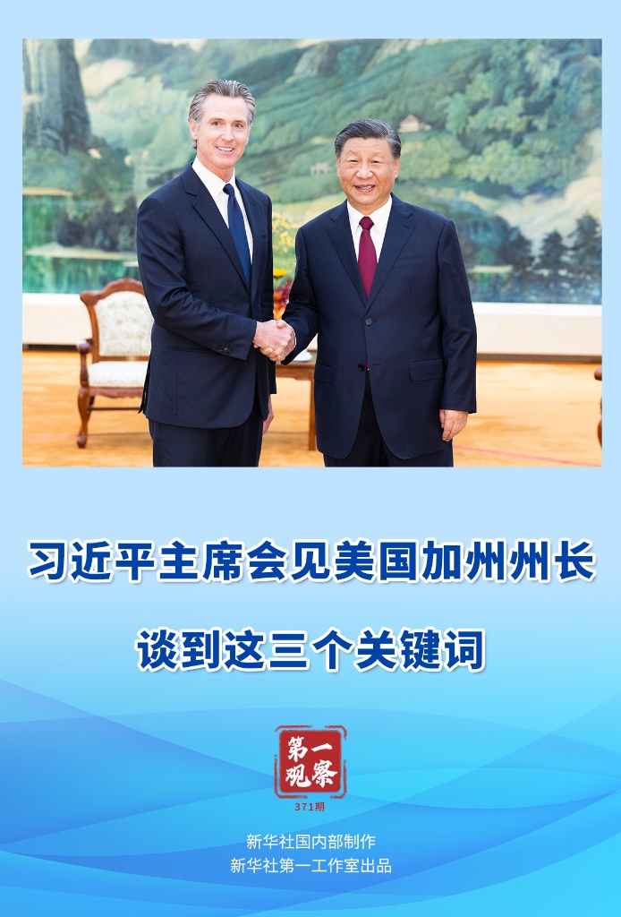 加利福尼亞,美國(guó)西海岸重要門戶,經(jīng)濟(jì)總量居全美各州首位,在對(duì)華友好交往和務(wù)實(shí)合作中長(zhǎng)期走在全美前列。紐森此次于10月23日至29日訪華,是2020年以來(lái)第一位來(lái)訪的美國(guó)州長(zhǎng)。在中美關(guān)系呈現(xiàn)止跌企穩(wěn)積極勢(shì)頭的關(guān)鍵時(shí)刻,習(xí)近平主席會(huì)見(jiàn)美國(guó)加州州長(zhǎng),備受中美兩國(guó)和國(guó)際社會(huì)關(guān)注。習(xí)近平主席談到的三個(gè)關(guān)鍵詞,飽含深意。