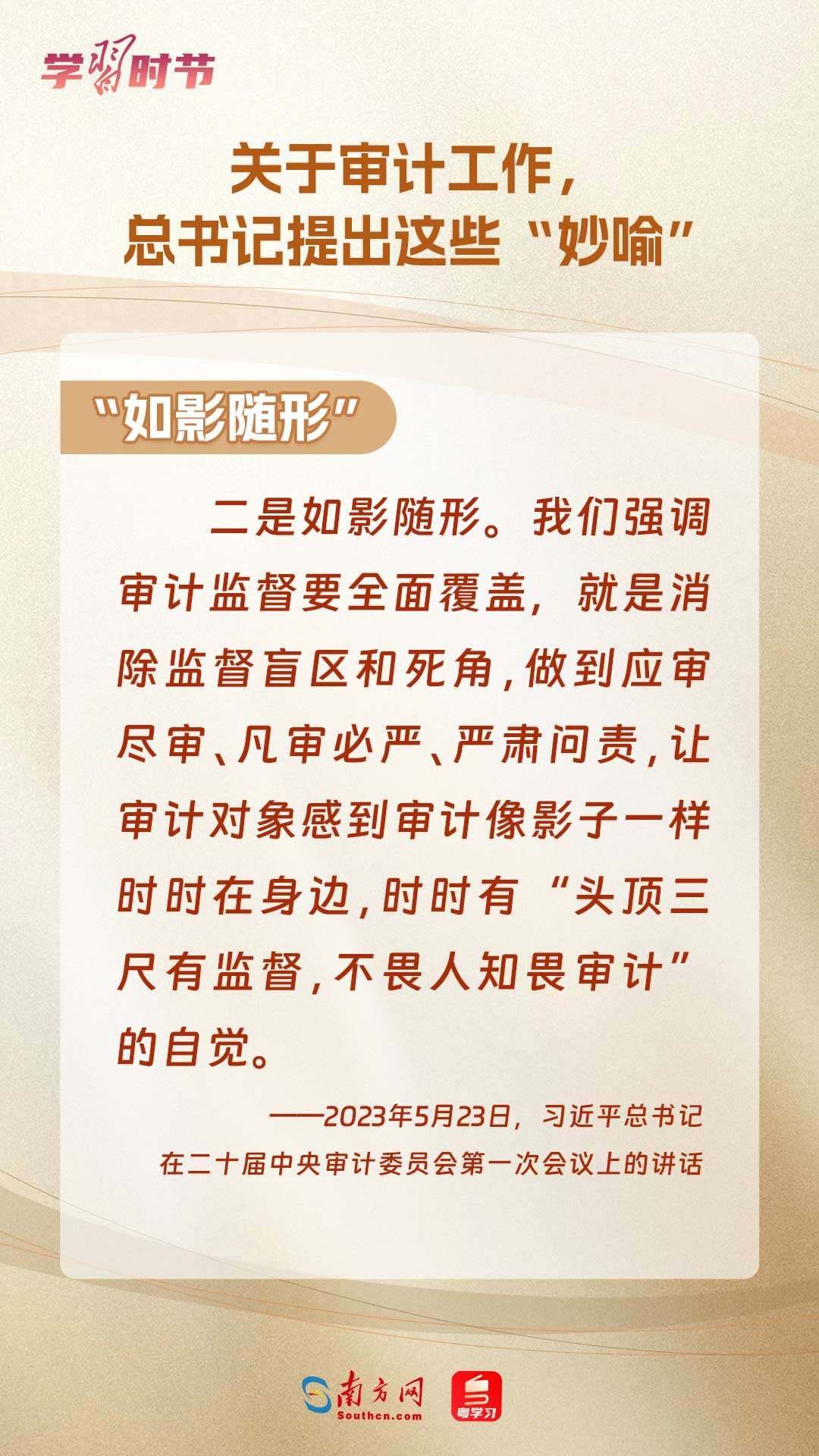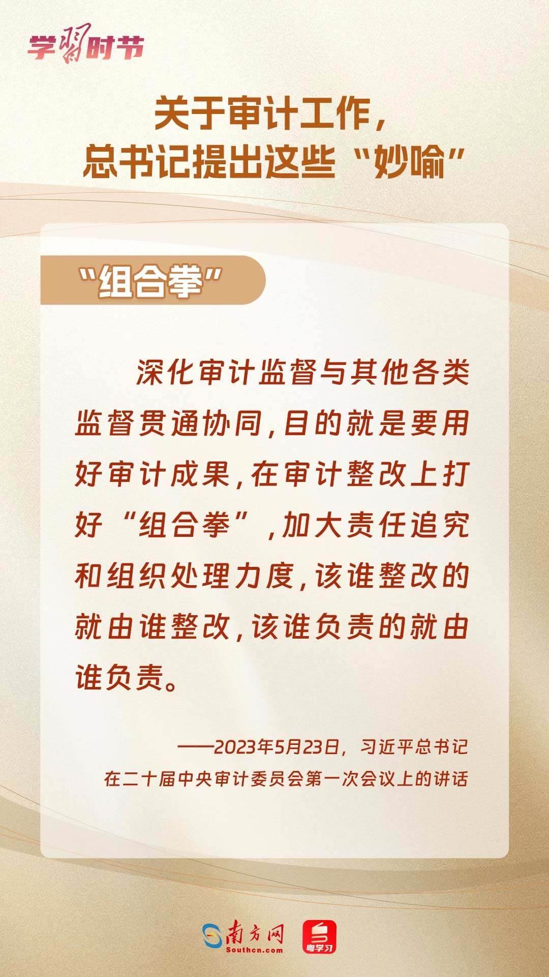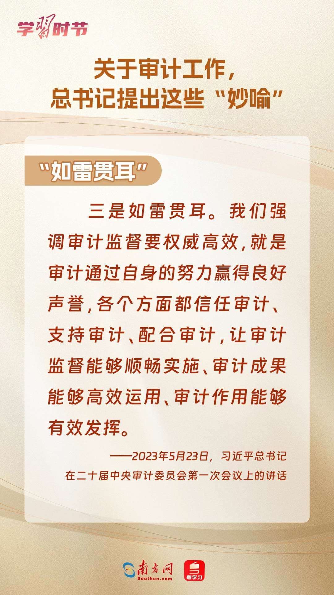 11月1日出版的《求是》雜志刊登了習(xí)近平總書記在二十屆中央審計委員會第一次會議上的講話全文??倳浽谥匾v話中“妙喻”審計工作,讓我們一同學(xué)習(xí)。