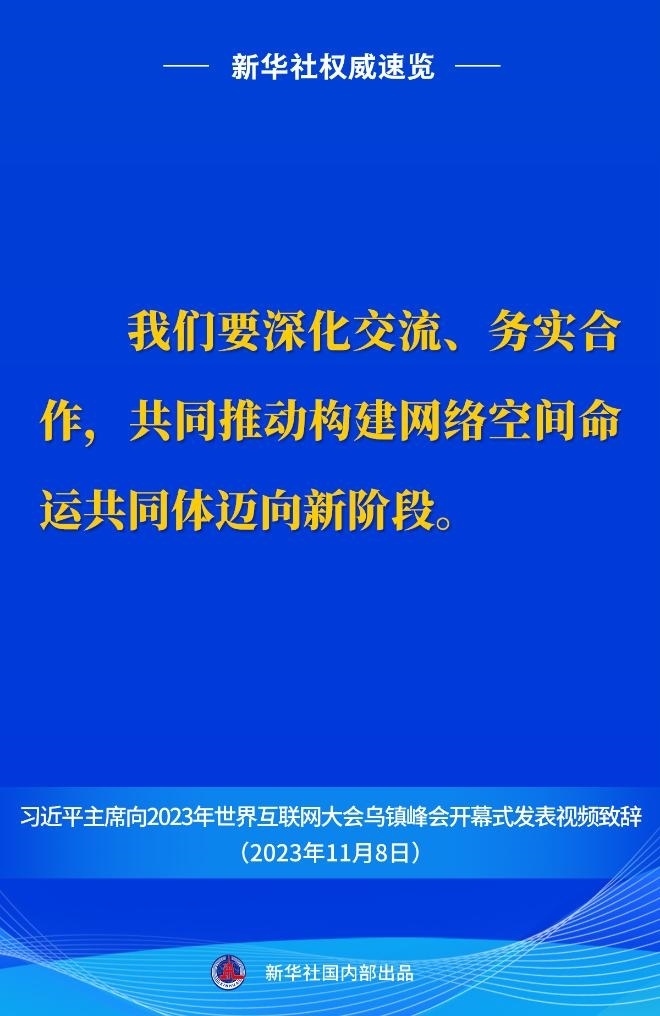 11月8日上午,國家主席習(xí)近平向2023年世界互聯(lián)網(wǎng)大會烏鎮(zhèn)峰會開幕式發(fā)表視頻致辭。一起來看金句。